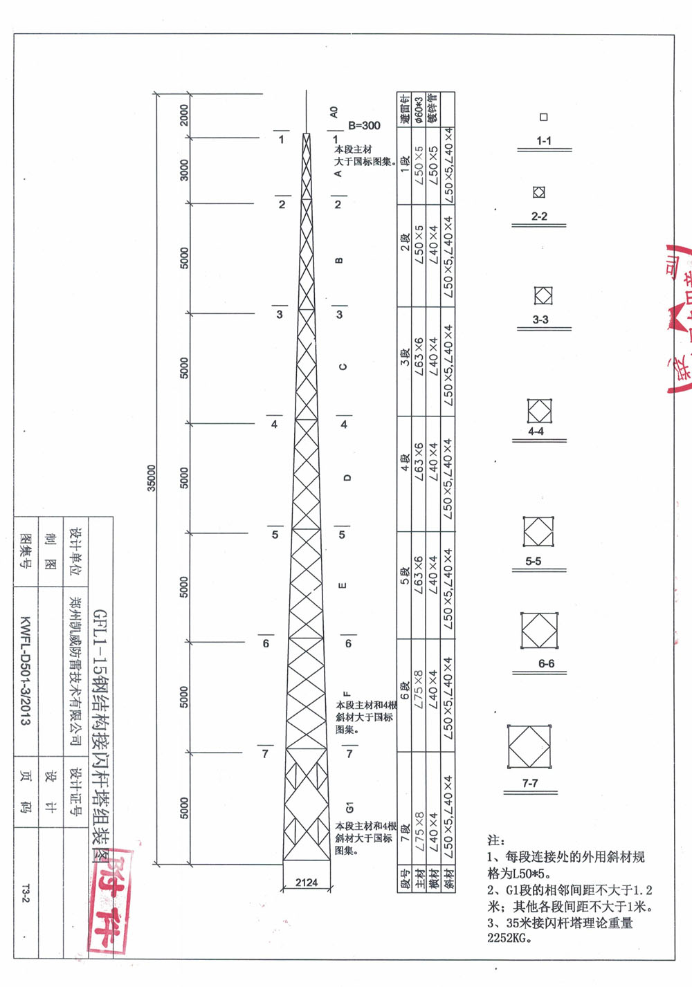 一、避雷針型號(hào):GFL1-15(高度35米,基礎(chǔ)JB-4)